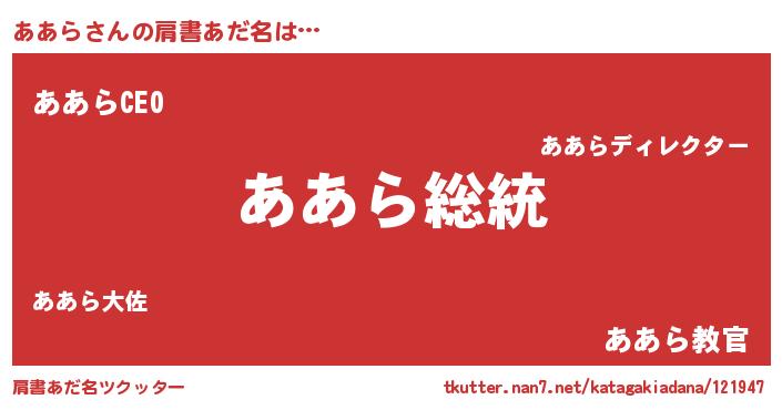 | ヒーロー風カッコイイあだ名 | 『究極戦士アアラ』『スーパーアアラ』 |