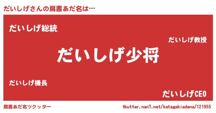 | ヒーロー風カッコイイあだ名 | 『超時空戦士ダイシゲ』『ネオダイシゲ』 |