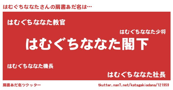 | 意味不明あだ名 | 『自称はむぐちななた』 |