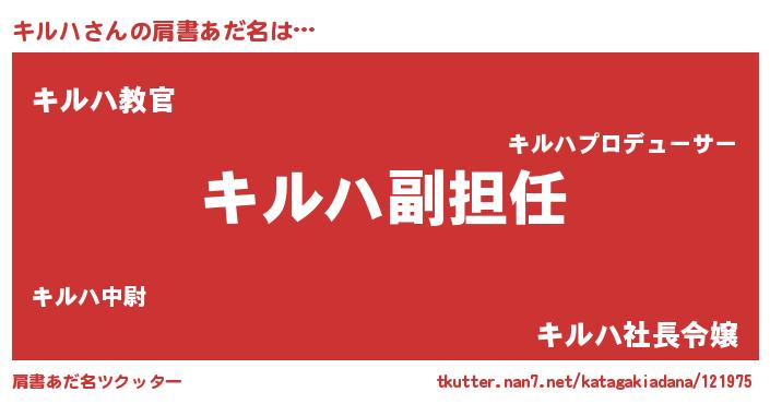 | 恥ずかしいあだ名 | 『キルちん』『プリティーキルハ』 |