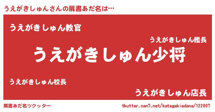 | 男性向けラノベタイトル風あだ名 | 『ウエガキシュンスレイヤー』 |