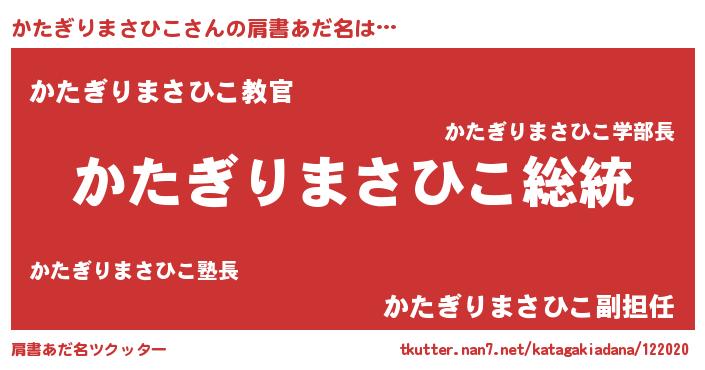 | 意味不明あだ名 | 『自称かたぎりまさひこ』 |