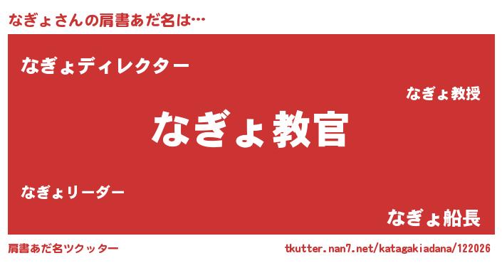 | ヒーロー風カッコイイあだ名 | 『仮面ナギダー』『正義の使者なぎょ』 |