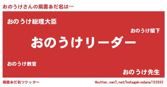 | 女子向けラノベタイトル風あだ名 | 『おのうけは平凡を望む』『闇のおのうけ』 |