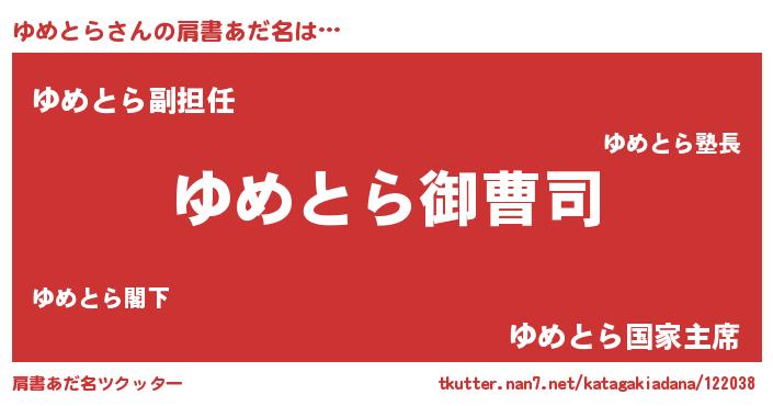 | ヘコむあだ名 | 『ゆめっふぃ~』『ゆめとら(遠い目)』 |