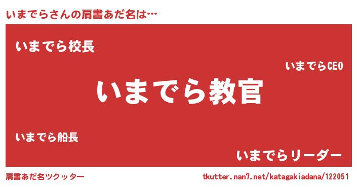 | 男性向けラノベタイトル風あだ名 | 『魔弾の王といまでら』『緋弾のイマデラ』 |