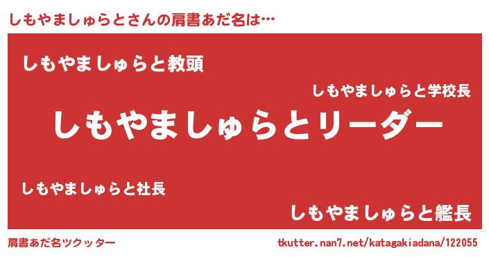 | ヘコむあだ名 | 『しもぷりん』『しもやましゅらと(笑)』 |