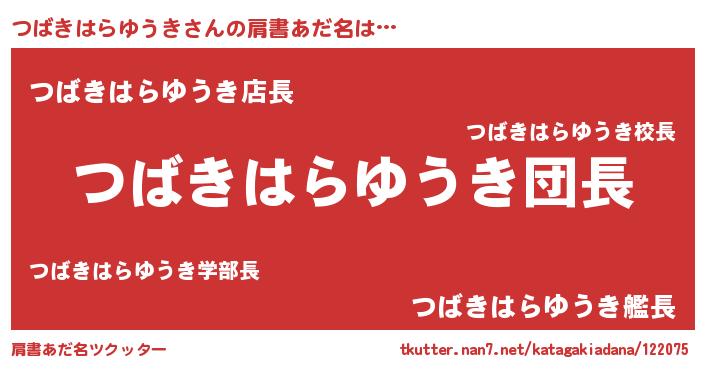 | 男性向けラノベタイトル風あだ名 | 『つばきはらゆうきの嫁は女の子じゃないと思った?』 |