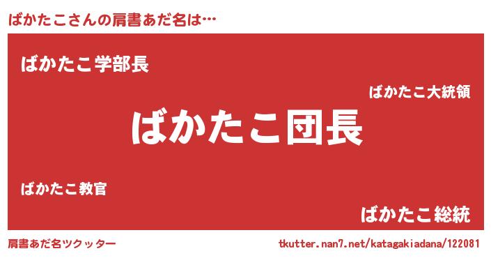 | 男性向けラノベタイトル風あだ名 | 『ばかたこの嫁は女の子じゃないと思った?』 |