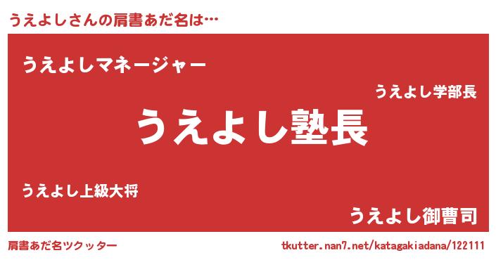 | 胡散臭い通販商品みたいなあだ名 | 『信頼と実績のネックレス…その名も「うえよし」』 |
