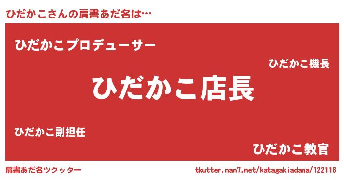 | ヒーロー風カッコイイあだ名 | 『スーパーヒダカコ』『仮面ヒダダー』 |