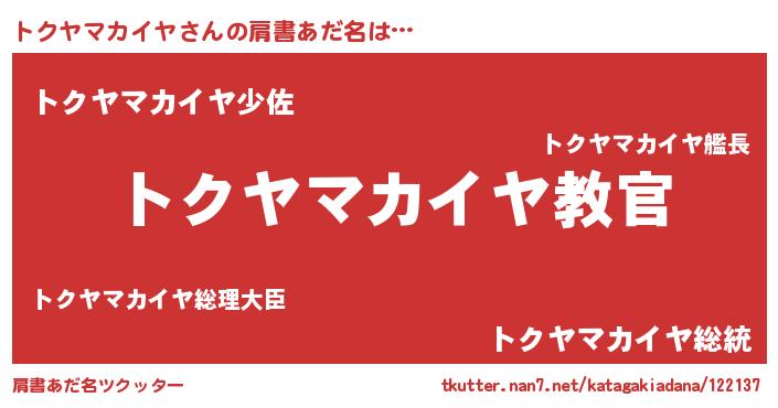 | 男性向けラノベタイトル風あだ名 | 『この素晴らしい世界にトクヤマカイヤを!』 |