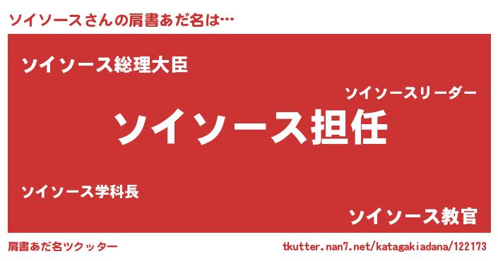 | ヘコむあだ名 | 『ソイソース(苦笑)』『なまこ酢』 |