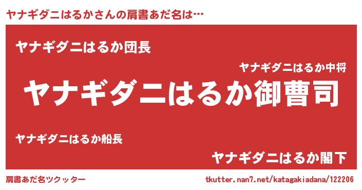 | 女子向けラノベタイトル風あだ名 | 『ヤナギダニはるか姫と円卓の騎士』 |