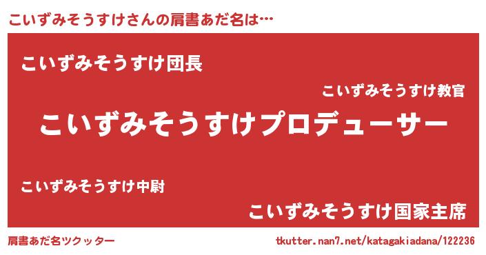 | 男性向けラノベタイトル風あだ名 | 『はたらくこいずみそうすけさま!』 |