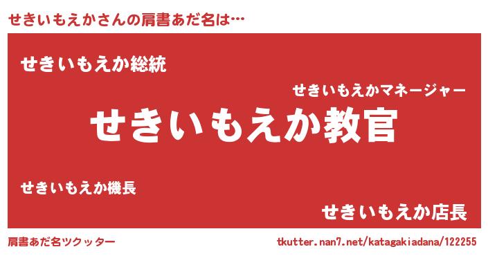 | 意味不明あだ名 | 『住所不定無職せきいもえか(2歳)』 |