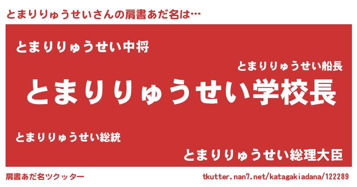 | 男性向けラノベタイトル風あだ名 | 『おまえをオタクにしてやるから、俺をとまりりゅうせいにしてくれ! 』 |