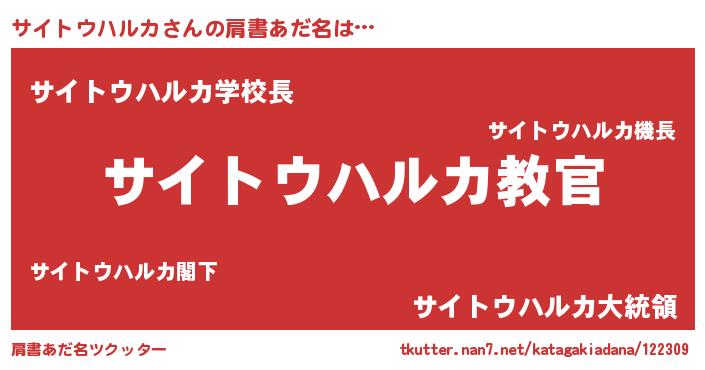 | 男性向けラノベタイトル風あだ名 | 『魔弾の王とサイトウハルカ』 |