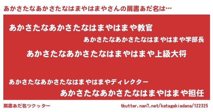| ヘコむあだ名 | 『あかさたなあかさたなはまやはまや(遠い目)』 |