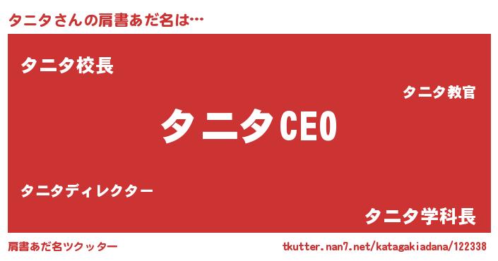 | ポケモン風あだ名 | 『タニチュウ』『ゼニタニ』 |