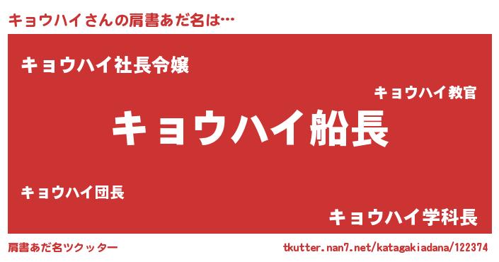| ヒーロー風カッコイイあだ名 | 『スーパーキョウハイ』『仮面キョダー』 |