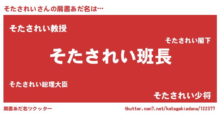 | ヒーロー風カッコイイあだ名 | 『魔戒騎士ソタ』『天空の使者そたされい』 |