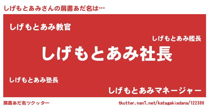 | 男性向けラノベタイトル風あだ名 | 『シゲモトアミアートオンライン』 |