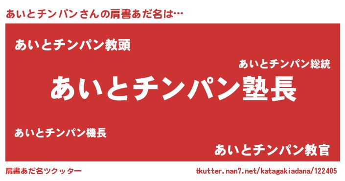 | 男性向けラノベタイトル風あだ名 | 『あいとチンパンの嫁は女の子じゃないと思った?』 |