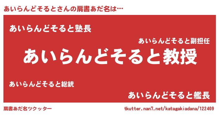 | ヘコむあだ名 | 『あいを』『あいらんどそると(苦笑)』 |