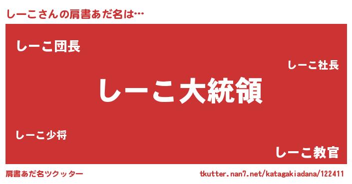 | 意味不明あだ名 | 『しーこフォーエバー』『ペロリンしーこ』 |