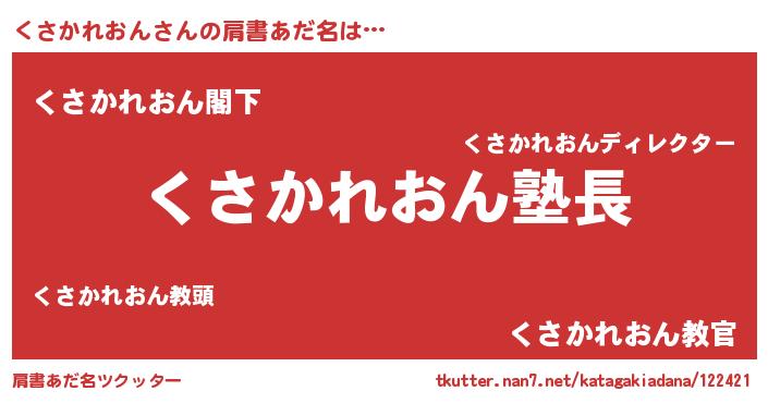 | 意味不明あだ名 | 『とにかく怪しいくさかれおん』 |