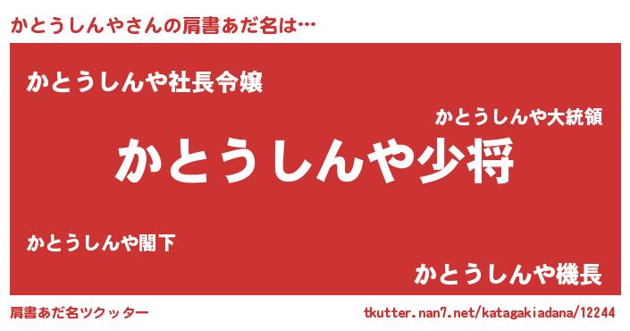 | 女子向けラノベタイトル風あだ名 | 『かとうしんやの玉の輿計画!』 |