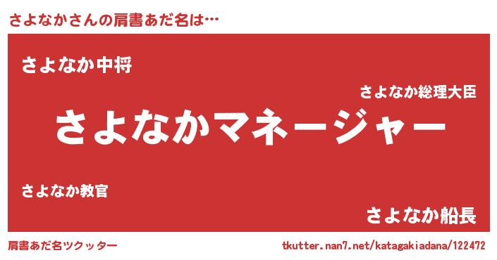 | 男性向けラノベタイトル風あだ名 | 『はたらくさよなかさま!』 |
