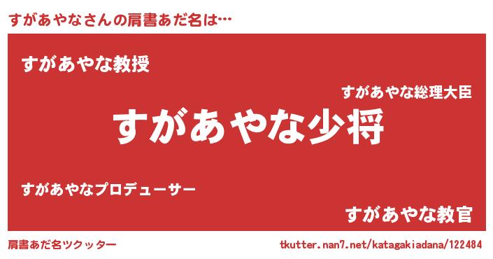 | 男性向けラノベタイトル風あだ名 | 『すがあやな~年齢イコール彼女いない歴の魔法使い~』 |