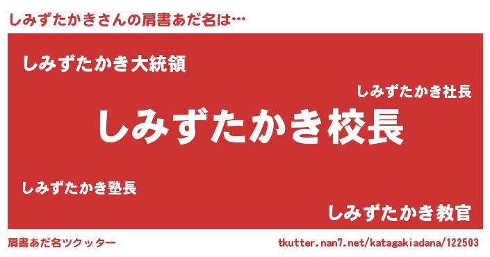 | 胡散臭い通販商品みたいなあだ名 | 『来世でも幸せになれる健康食品…その名も「しみずたかき」』 |
