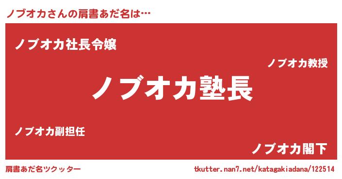 | 胡散臭い通販商品みたいなあだ名 | 『信頼と実績のネックレス…その名も「ノブオカ」』 |