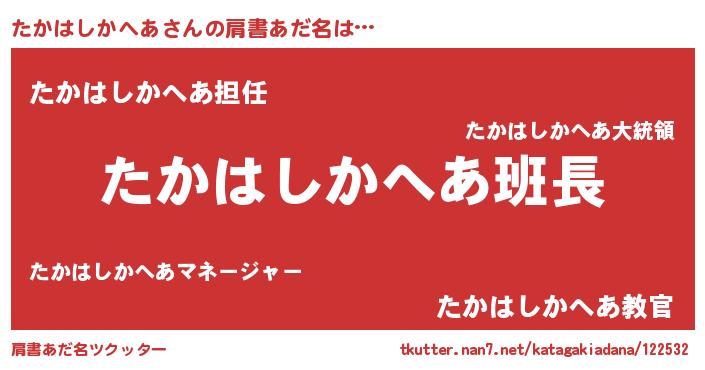 | 欧米人風あだ名 | 『ウサインたかはしかへあ』 |