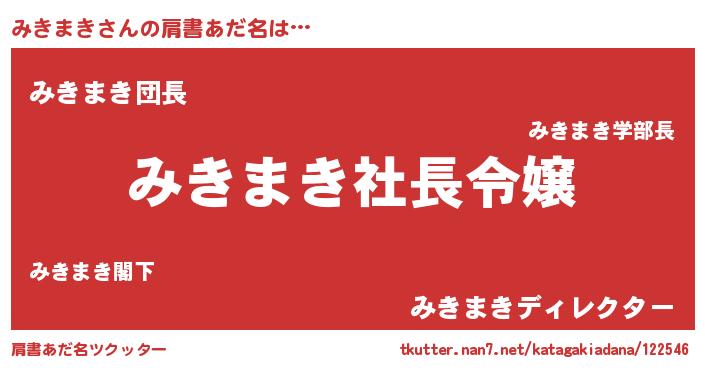 | 胡散臭い通販商品みたいなあだ名 | 『億万長者になれる霊験あらたかなお札…その名も「みきまき」』 |