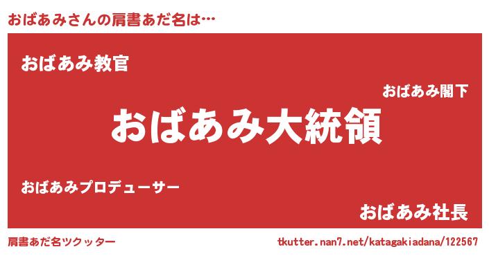 | 女子向けラノベタイトル風あだ名 | 『おばあみ伯爵の花嫁』 |