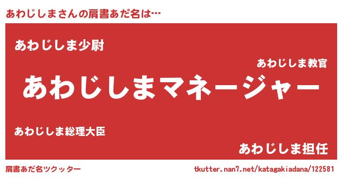 | 男性向けラノベタイトル風あだ名 | 『あわじしまに滅ぼされるだけの簡単なお仕事です』 |