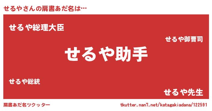 | ヒーロー風カッコイイあだ名 | 『正義の使者せるや』『ネオセルヤ』 |
