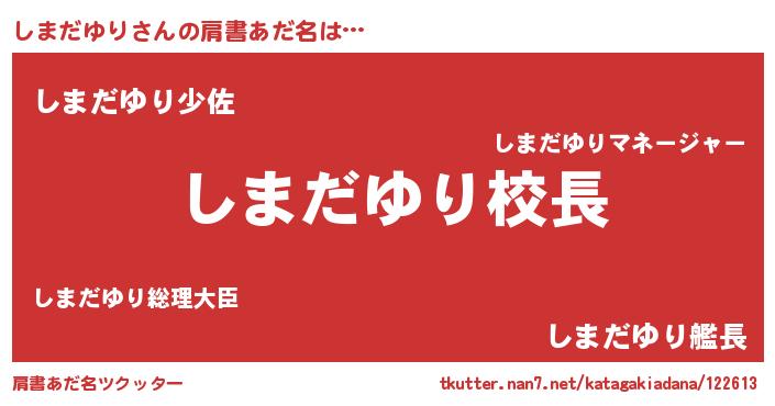 | ヘコむあだ名 | 『しまだゆり(笑)』『豆乳』 |