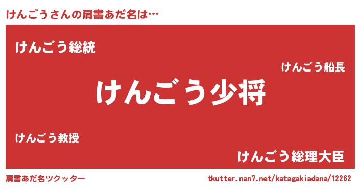 | 男性向けラノベタイトル風あだ名 | 『転生したらけんごうだった件』 |