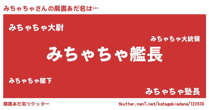 | 男性向けラノベタイトル風あだ名 | 『うちのみちゃちゃが世界を掌握している!』 |