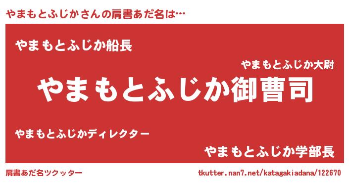 | 胡散臭い通販商品みたいなあだ名 | 『億万長者になれる霊験あらたかなお札…その名も「やまもとふじか」』 |