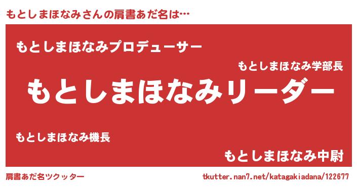 | 男性向けラノベタイトル風あだ名 | 『もとしまほなみの嫁は女の子じゃないと思った?』 |
