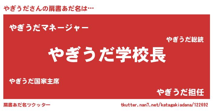 | 欧米人風あだ名 | 『ダニエルやぎうだ』 |