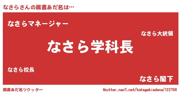 | ヘコむあだ名 | 『なまこ酢』『なさら(笑)』 |