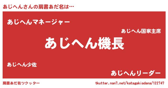 | 意味不明あだ名 | 『とにかく怪しいあじへん』 |