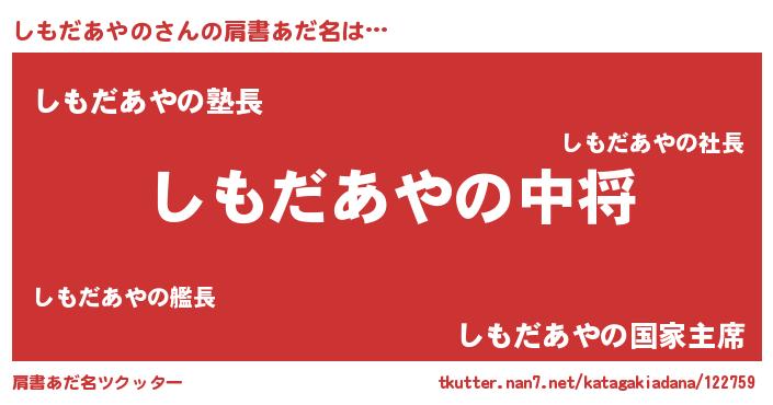 | ポケモン風あだ名 | 『シモキング』『ヒシモダアヤノ』 |